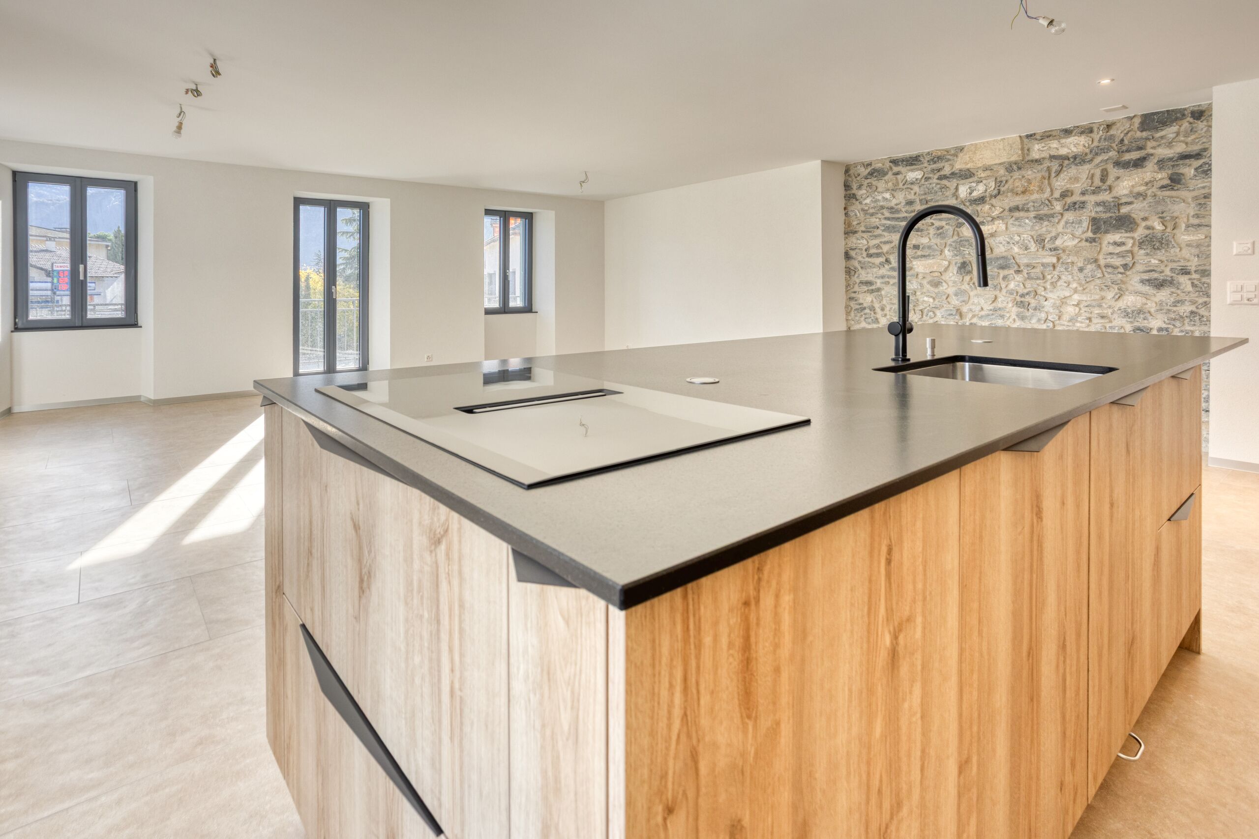 Vous découvrirez ensuite un espace de vie généreux, composé d'une belle cuisine ouverte sur le séjour. Elle se compose de nombreux rangements ainsi que d'un îlot central. Ses équipements sont de haut standing.