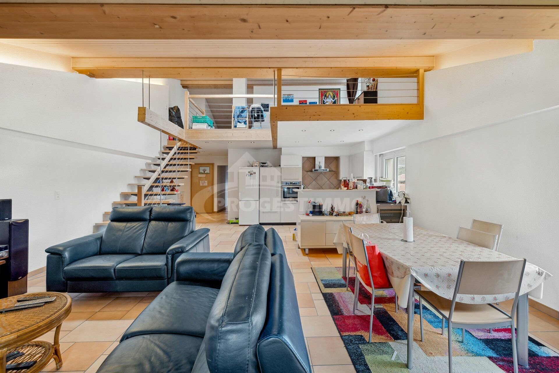 Ce appartement spacieux en duplex dispose d'un grand salon-salle à manger avec une belle hauteur sous plafond et un pôle à bois pour des soirées chaleureuses. La cuisine semi-ouverte sur la pièce à vivre vous permettra de préparer de délicieux repas tout en restant en contact avec vos invités.