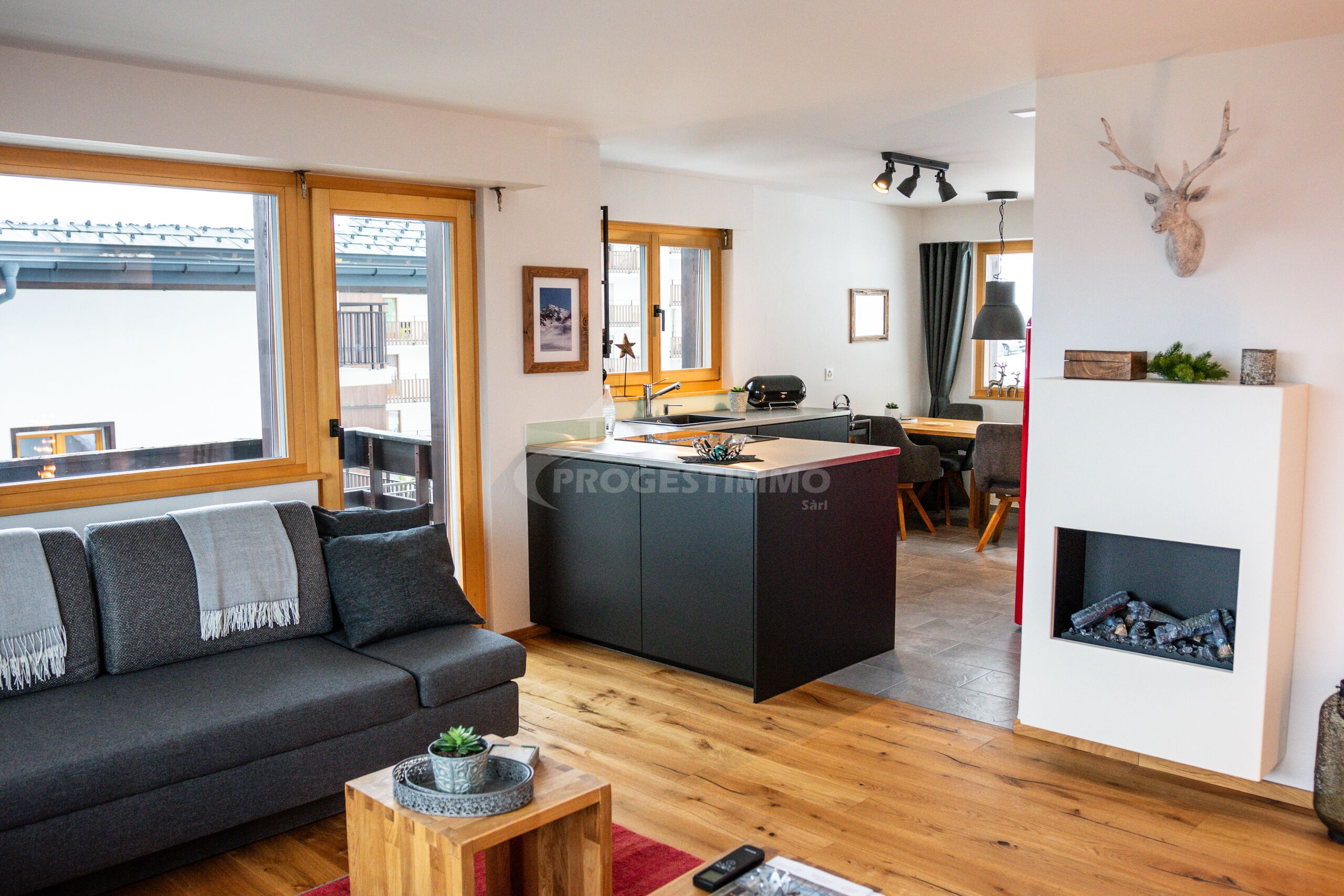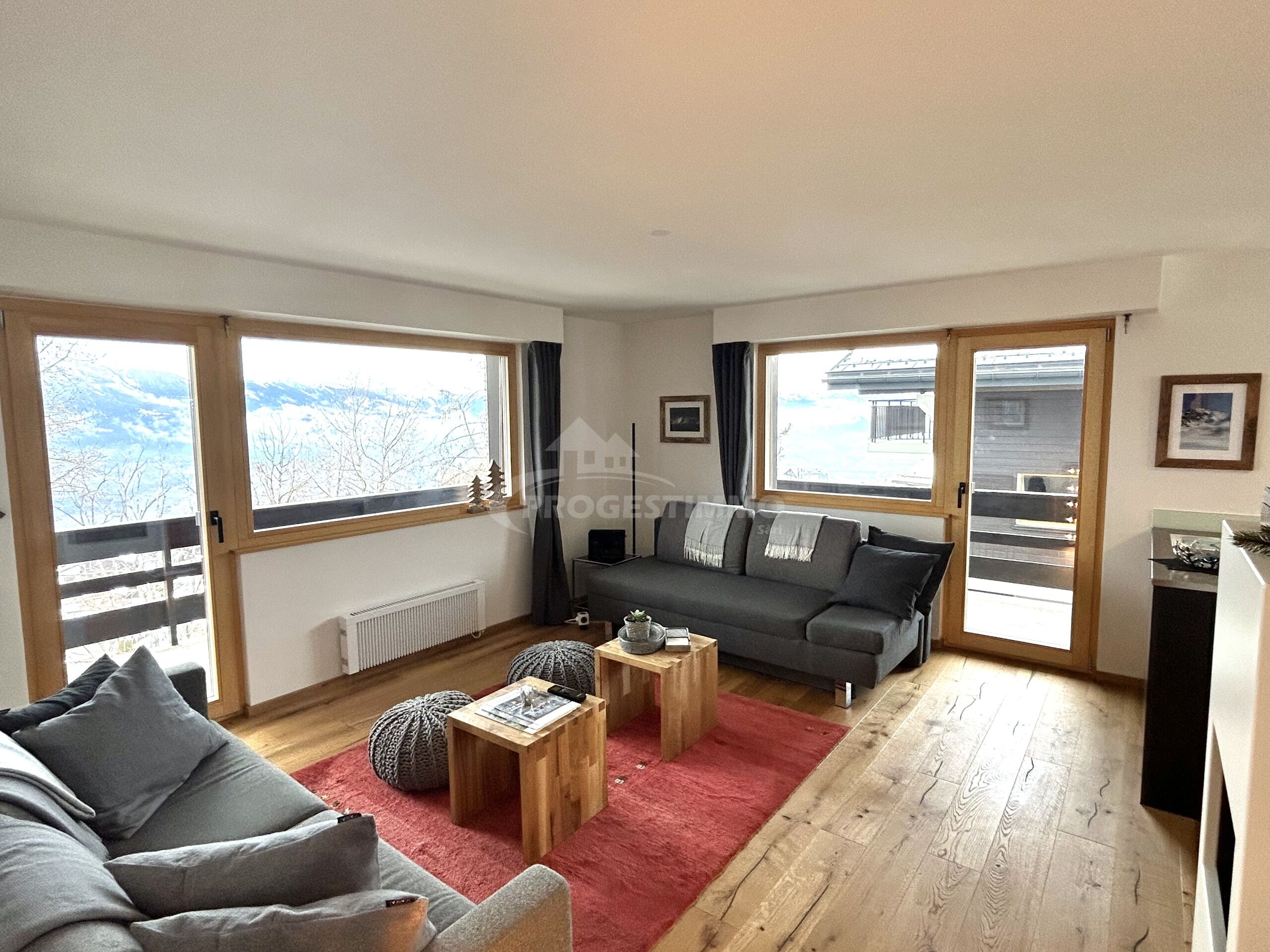 - Séjour spacieux donnant sur deux balcons avec vue sur les montagnes