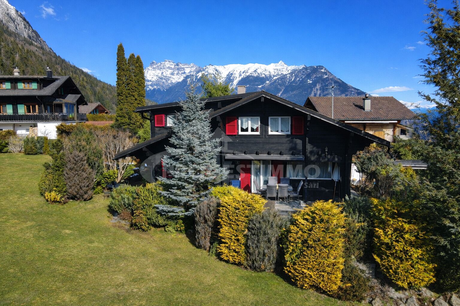 Situé dans un environnement calme et ensoleillé, ce superbe chalet de 6.5 pièces séduit immédiatement par son charme et son cadre naturel exceptionnel. Implanté sur une parcelle de 1959 m² et orienté plein sud, il offre une luminosité optimale tout au long de la journée ainsi qu’un confort idéal, que ce soit en résidence principale ou secondaire.