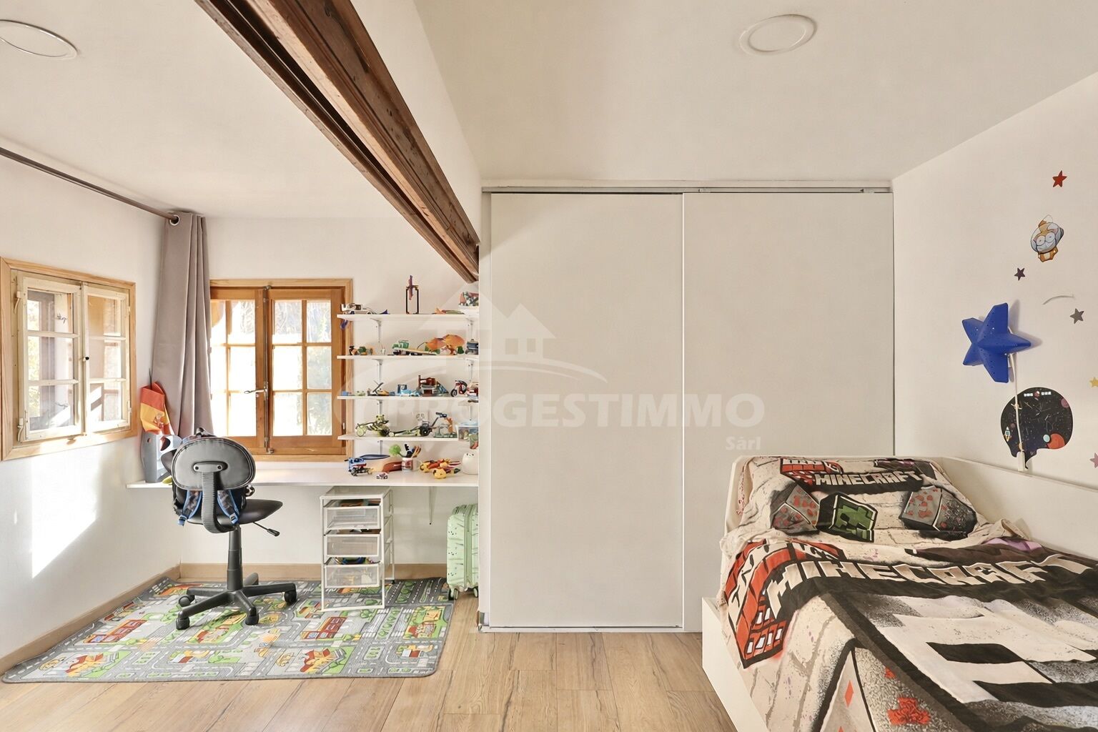 La maison bénéficie également d’une magnifique terrasse de plus de 100 m², un atout rare qui constitue un véritable prolongement de l’espace de vie. Cet espace extérieur spacieux est idéal pour partager des repas en plein air, profiter du soleil ou simplement admirer le paysage alpin environnant dans une atmosphère paisible.