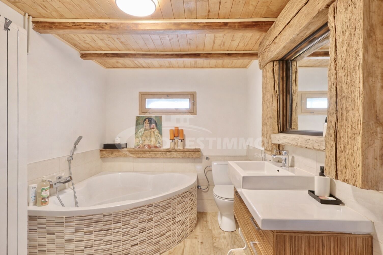 - Salle de bains privative dans la chambre parentale avec baignoire, douche, WC et lavabo