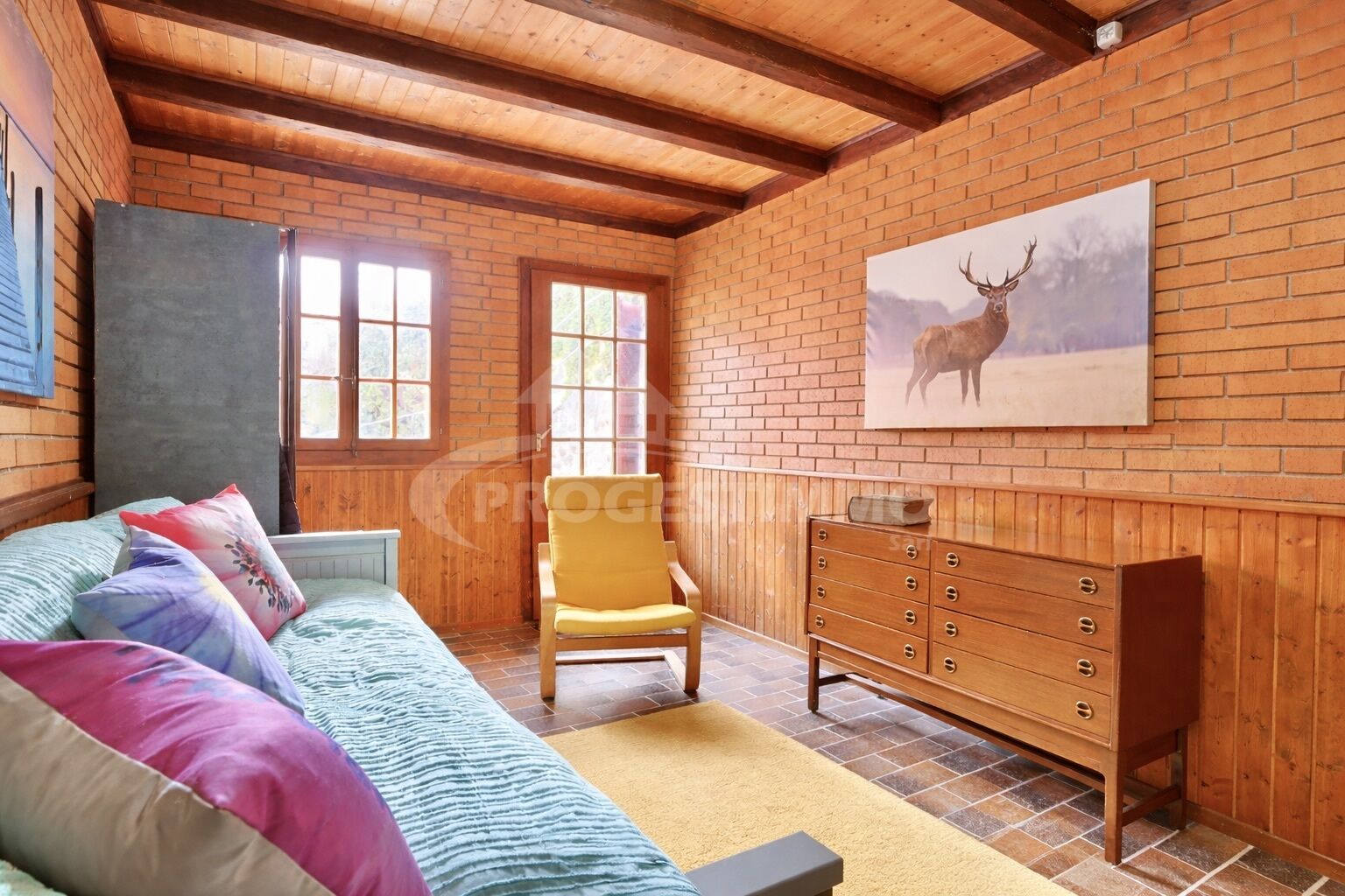 La maison bénéficie également d’un garage, particulièrement appréciable en montagne, ainsi que de plusieurs places de parc extérieures.