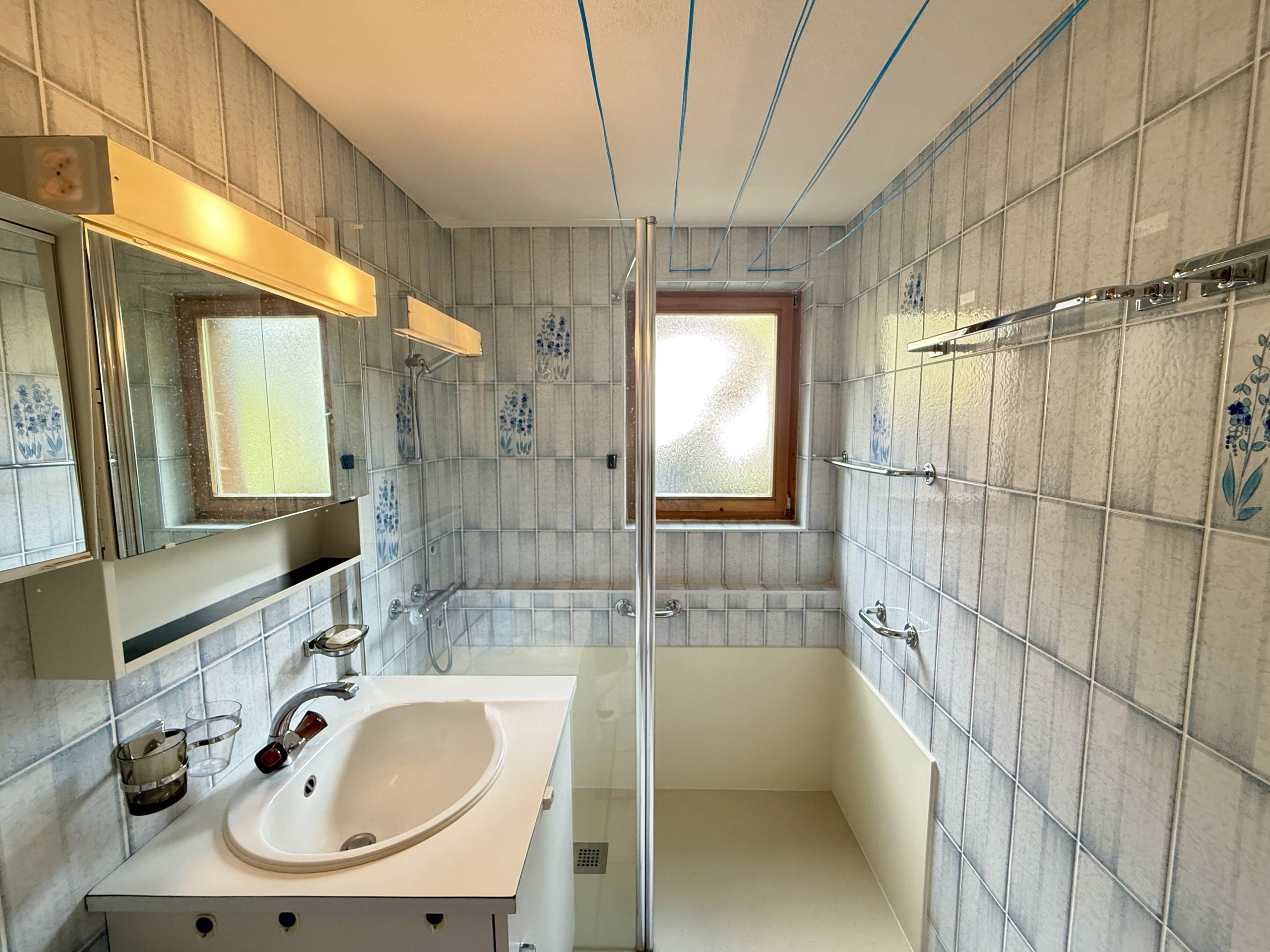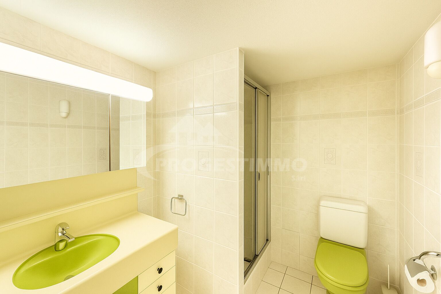 - Une salle d'eau équipée de WC, lavabo et douche
