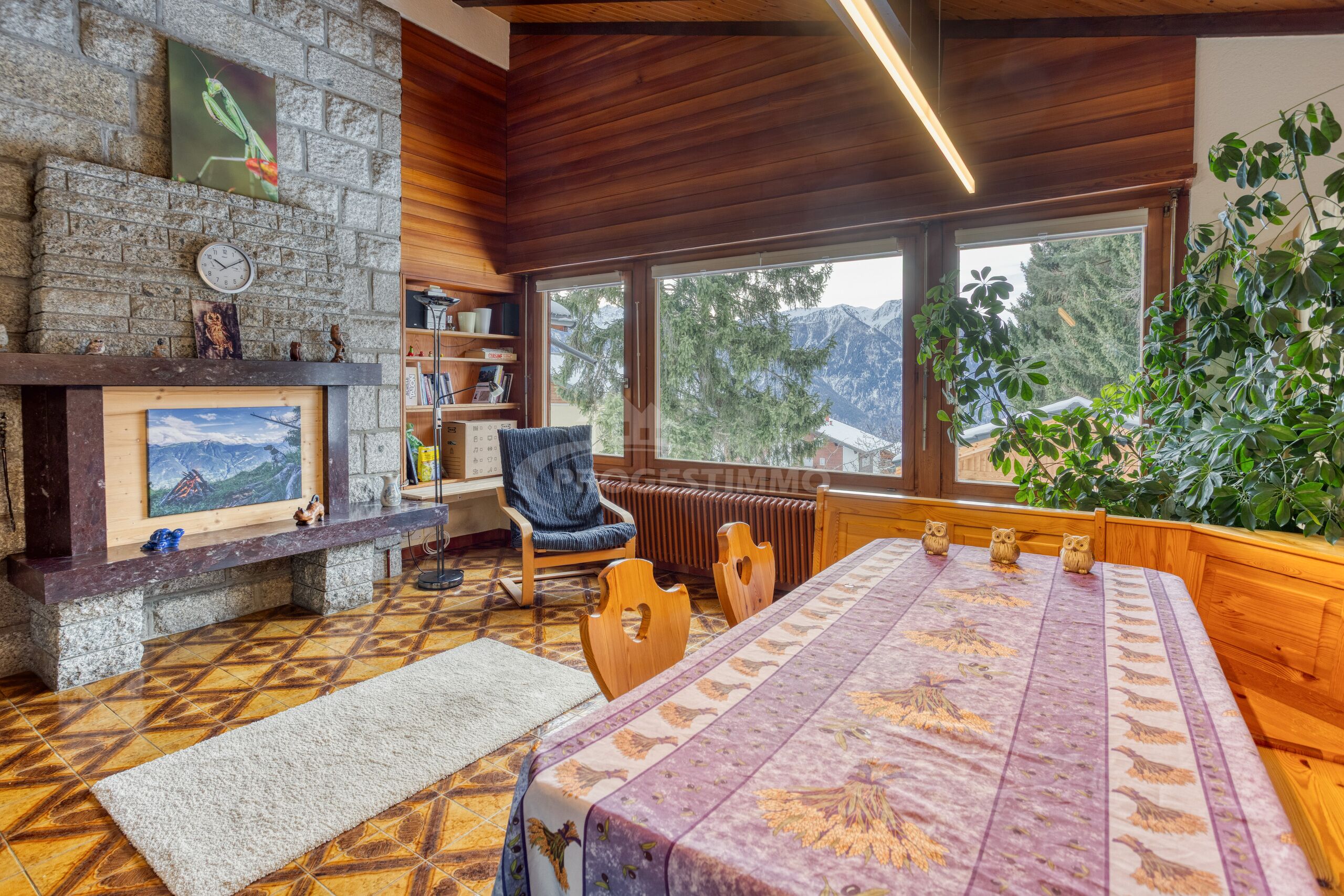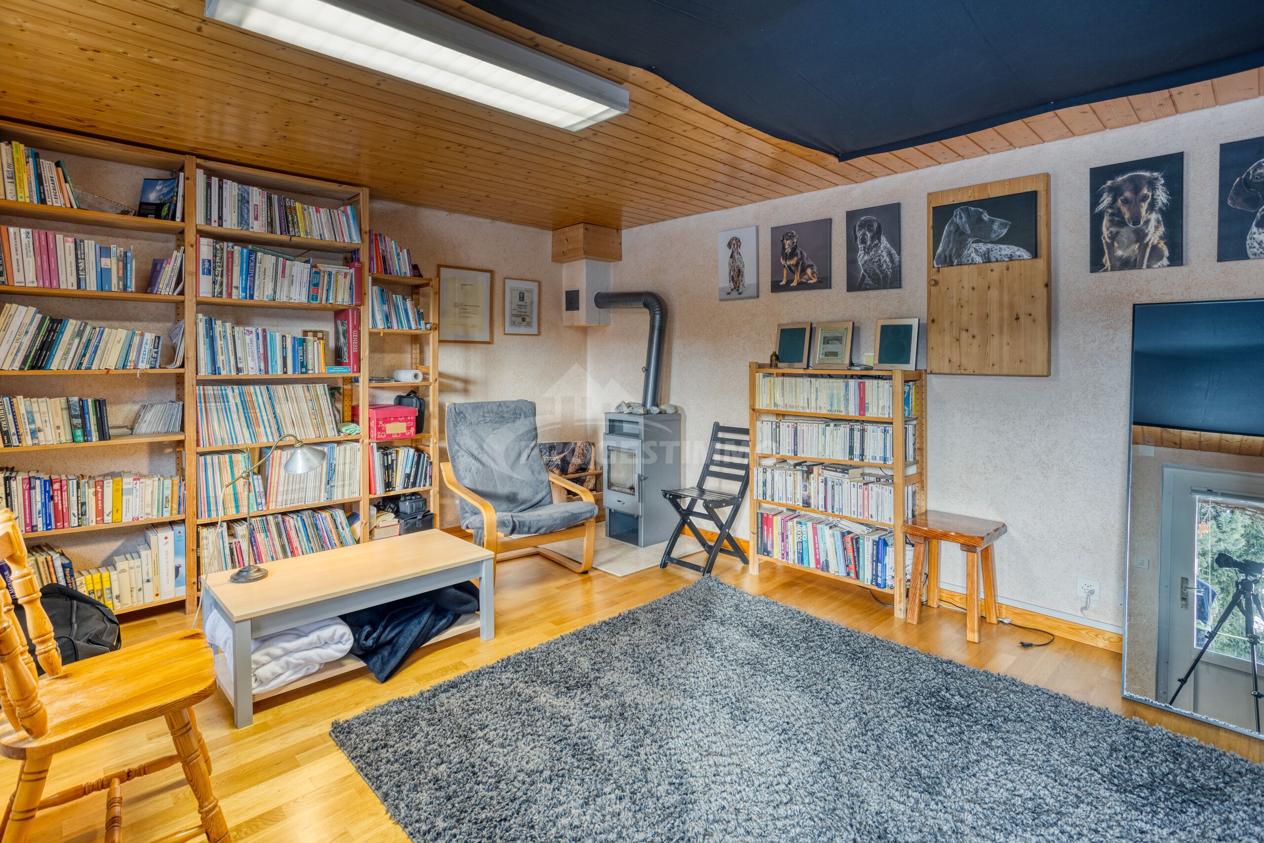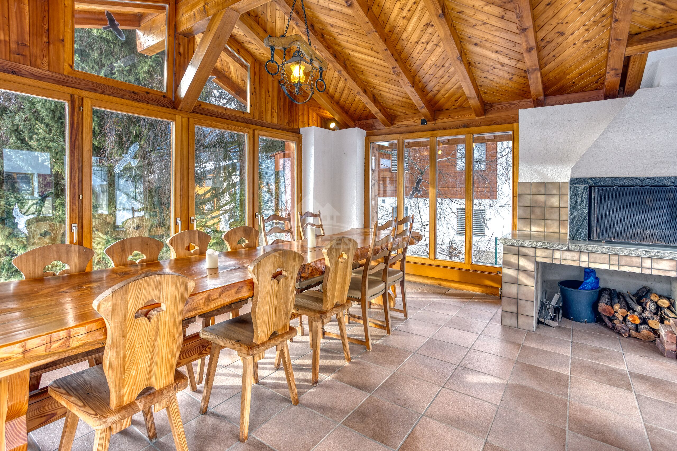 - Annexe 1 de 27 m² : composée d’un carnotzet entièrement vitré avec cheminée et d’une chambre indépendante avec poêle.