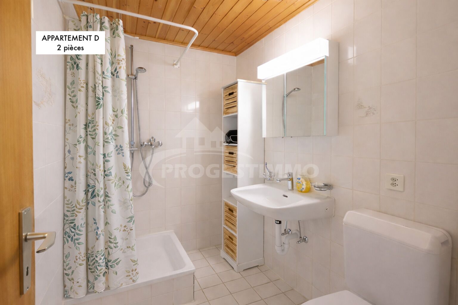 - Salle de bain avec douche, WC et lavabo