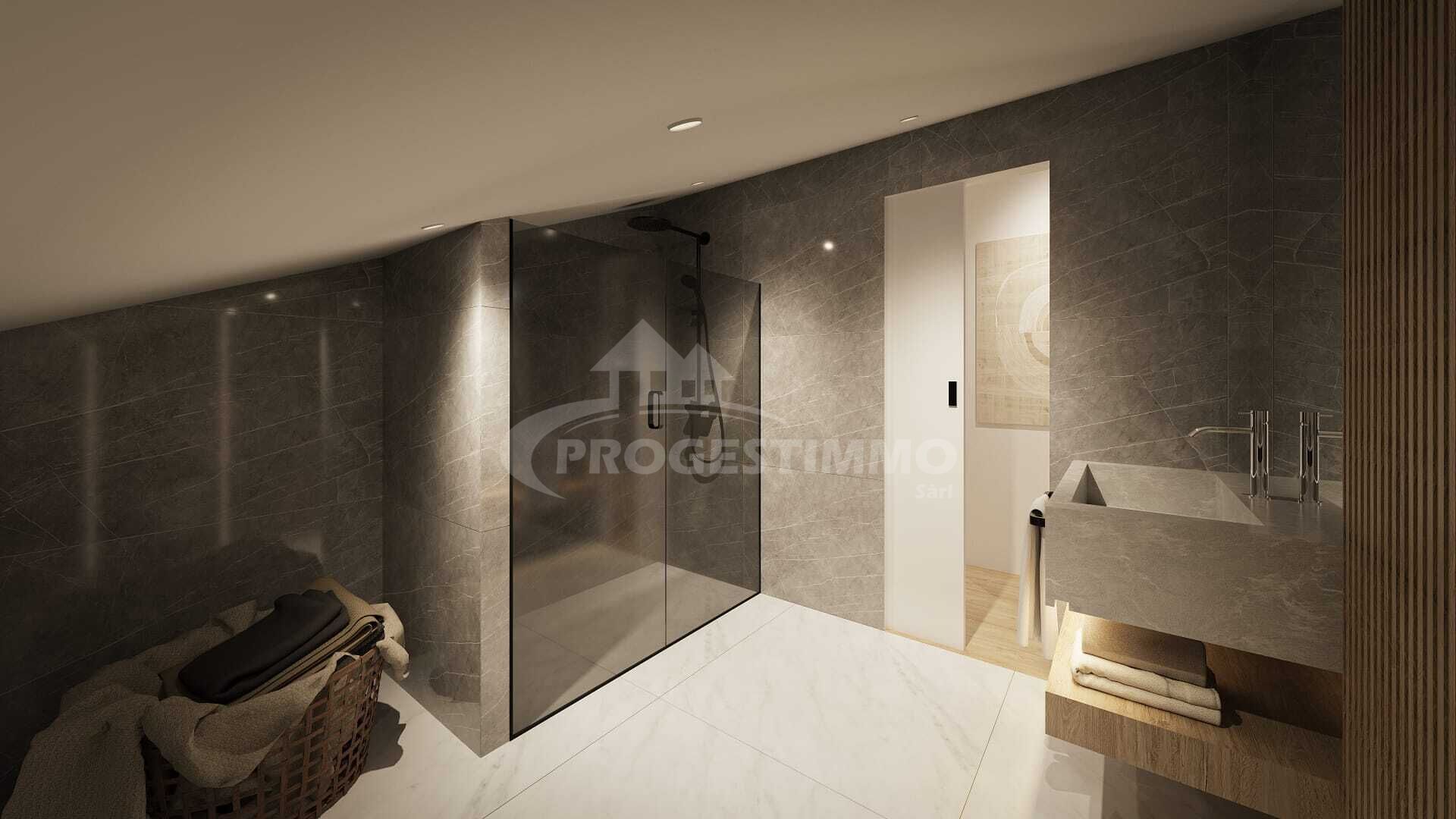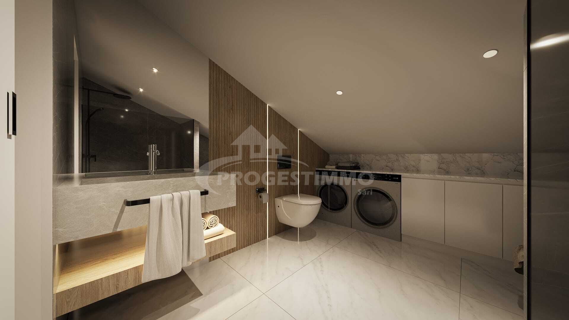 - Une salle d'eau avec douche, WC, lavabo, machine à laver et sèche-linge