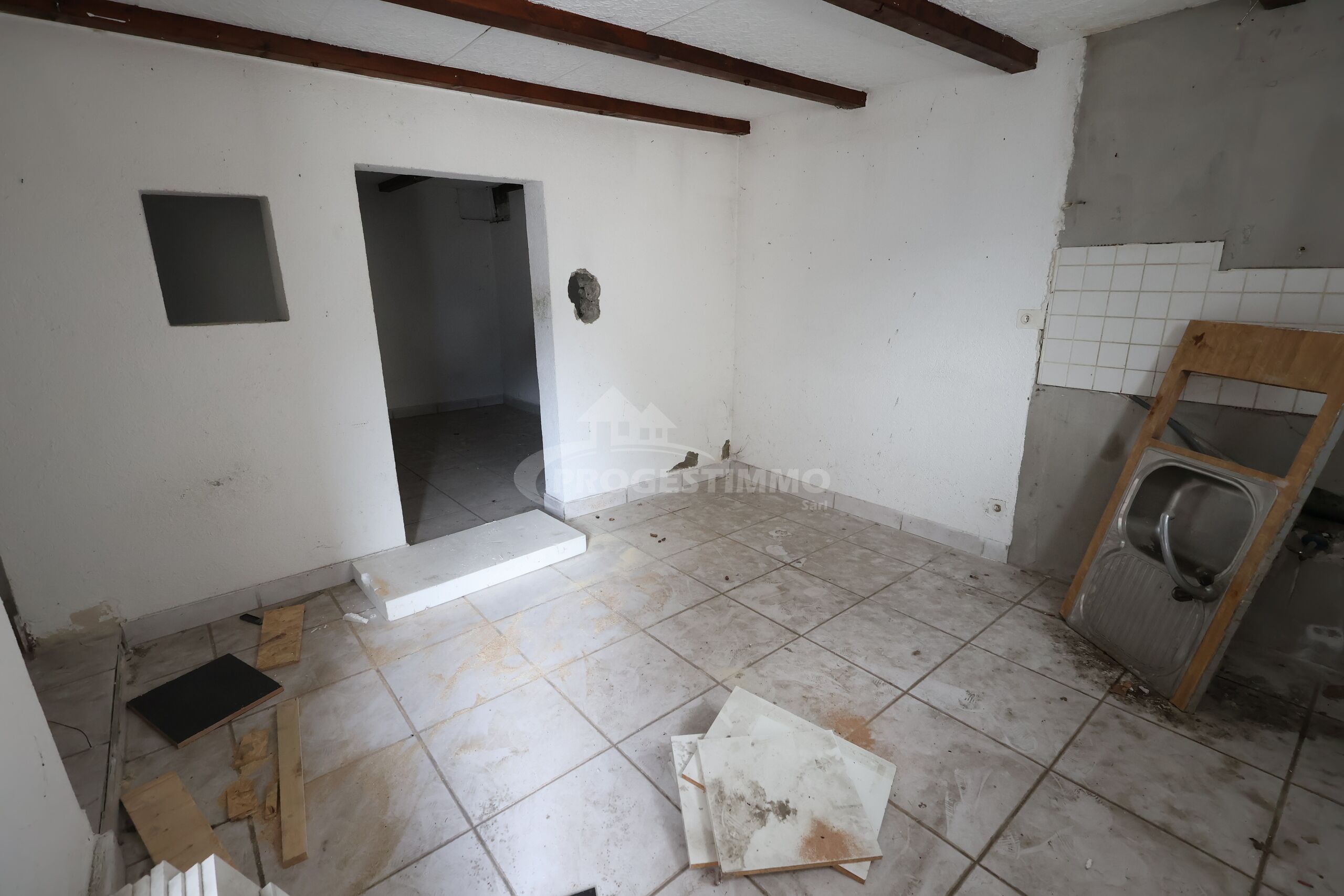 Bien à rénover entièrement : aucun système de chauffage en place, installations à refaire (électricité, sanitaires, cuisine, etc.)