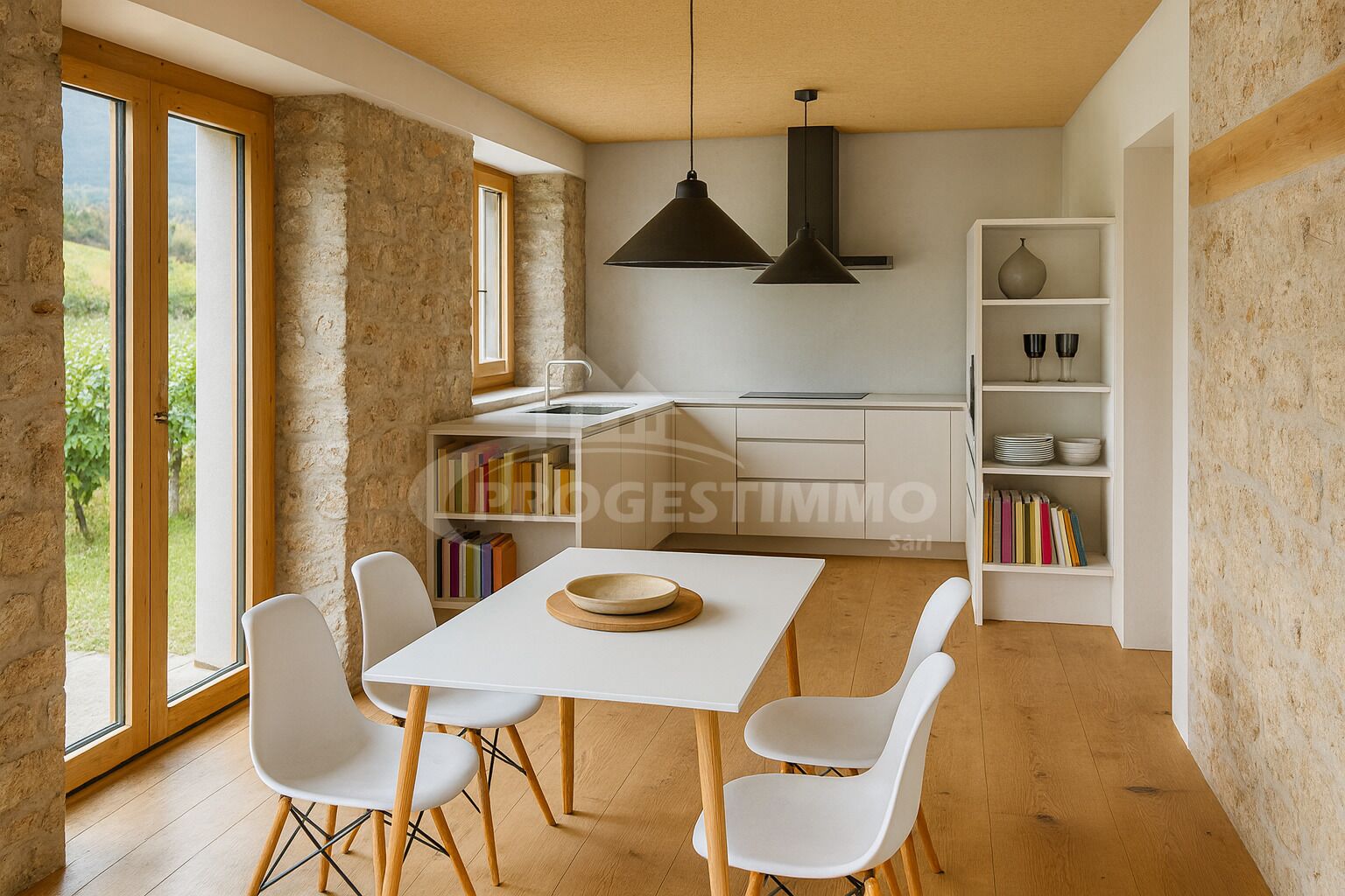 - Une cuisine moderne et entièrement agencée ouverte sur la salle à manger