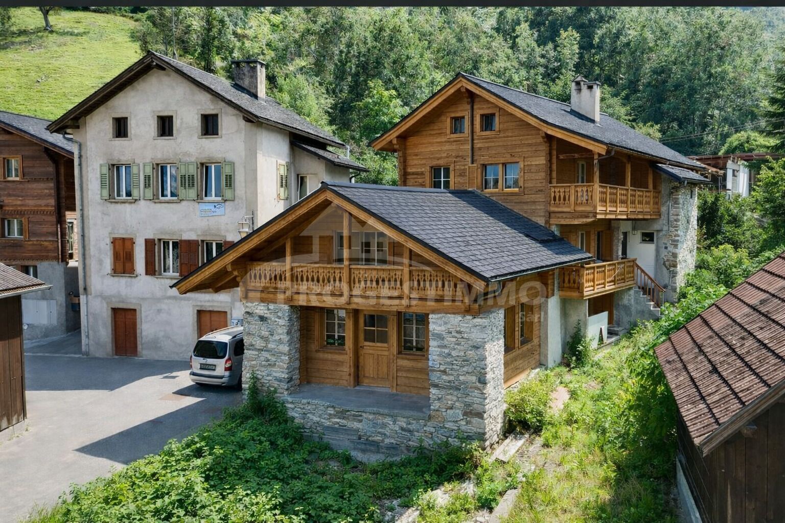 - Plusieurs bâtiments existants : chalet, grange, atelier