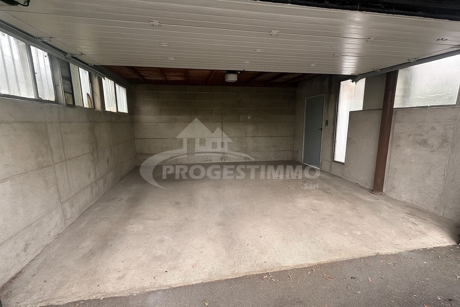 - Garage double avec porte automatique, pouvant également servir d’atelier grâce à ses grandes fenêtres.