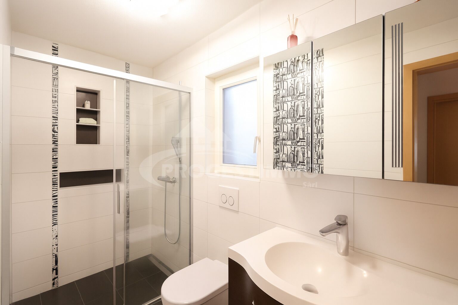 - Une salle d'eau avec douche à l'italienne, WC, lavabo et fenêtre