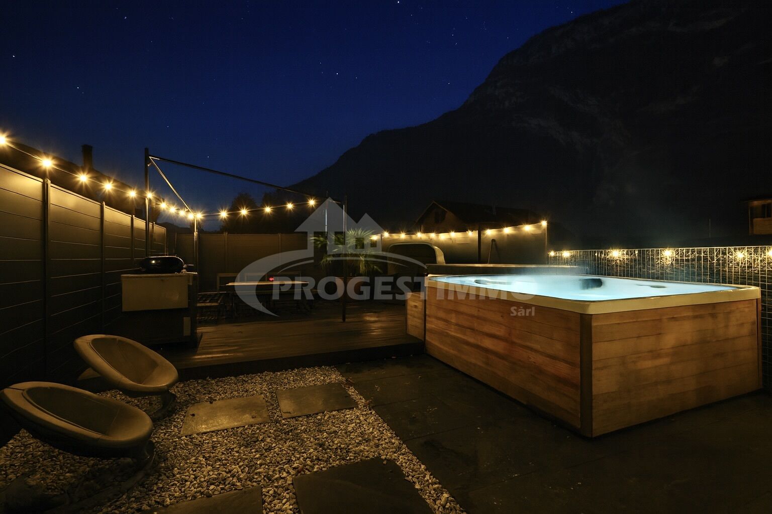 - Une terrasse avec jacuzzi, barbecue et pergola