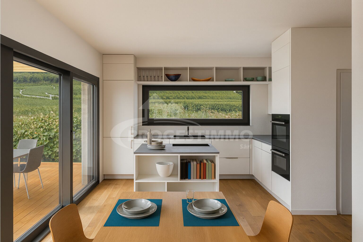 - Une cuisine entièrement agencée, ouverte sur la salle à manger